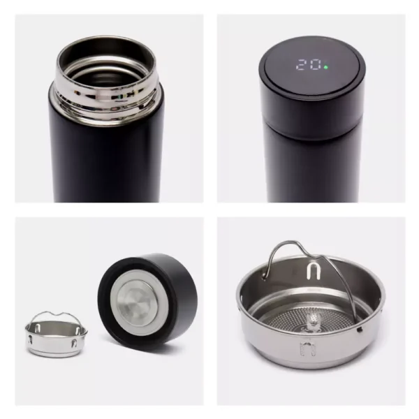 temperature in Celsius or Fahrenheit. - Temperature Retention: Double-wall vacuum insulation helps keep your drinks hot or cold for hours,
