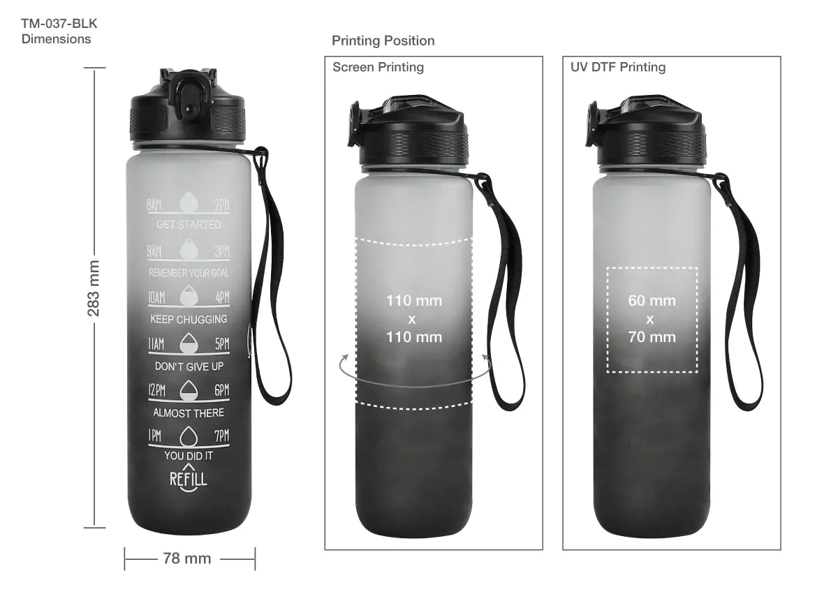 Stay hydrated and motivated throughout your day with our Motivational Water Bottles with Time-Marked. Designed for those who are committed to their health and wellness, this sleek black bottle combines functionality with inspiration.
